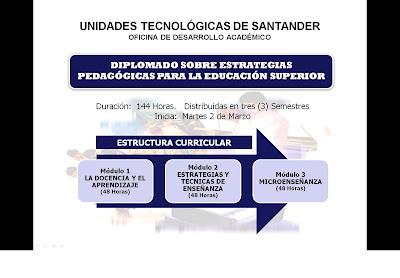 Academic Development Office of Technological Units of Santander, offers teacher training to qualify enable the teaching and learning. This brochure